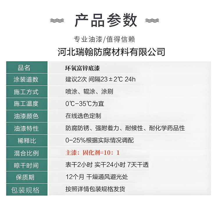 瑞翰环氧富锌防锈漆船舶/风电专用强附着力防腐涂料